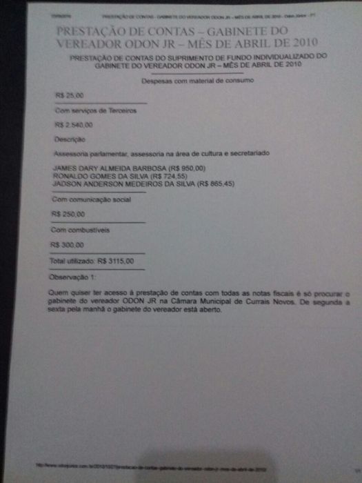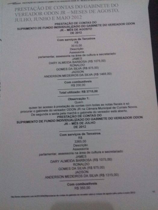 Confira abaixo algumas das prestações de conta do gabinete de Odon Júnior: